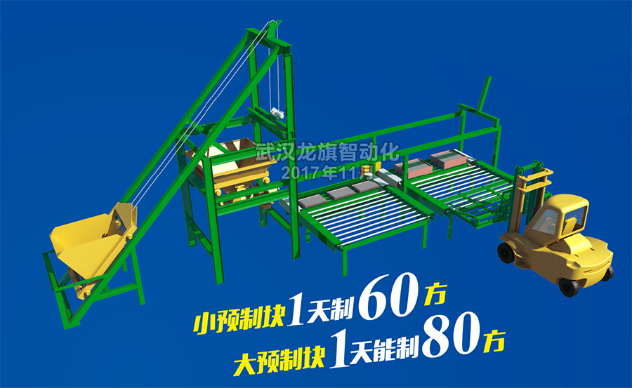 高效混凝土小预制件自动生产线,由斜拉上料、平轨出料、振动成型、料盒辊推、叉车转晒,自动化生产各类小预制件。